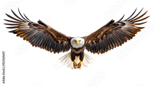© Maksym, Fototapeta premium Eagle soaring high, wings spread wide on clear background.