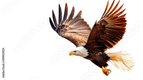 Obraz premium Eagle soaring in the sky, wings fully spread, white isolate background