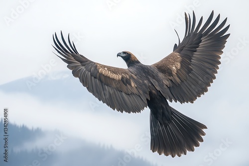 Obraz premium Eagle Soaring Misty Mountain Peaks.