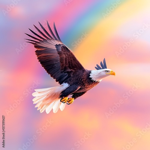 © Yung, Naklejka premium Eagle Soaring Sunset Sky