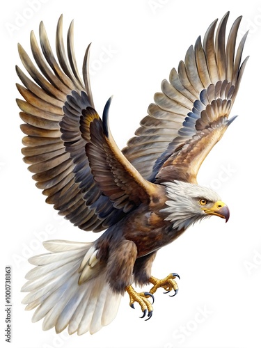 © ARTSPRIO, Obraz premium Eagle Soars on White. Eagle in Motion Isolated. Flight of the Eagle Image.