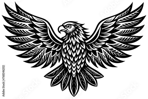 © KHF, Fototapeta premium Eagle spreading its wing. Black and white vector.