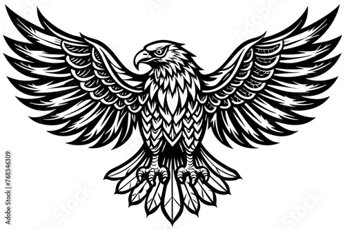 © KHF, Fototapeta premium Eagle spreading its wing. Black and white vector.