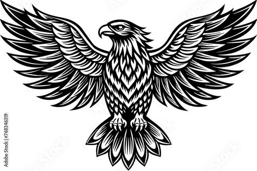 © KHF, Obraz premium Eagle spreading its wing. Black and white vector.