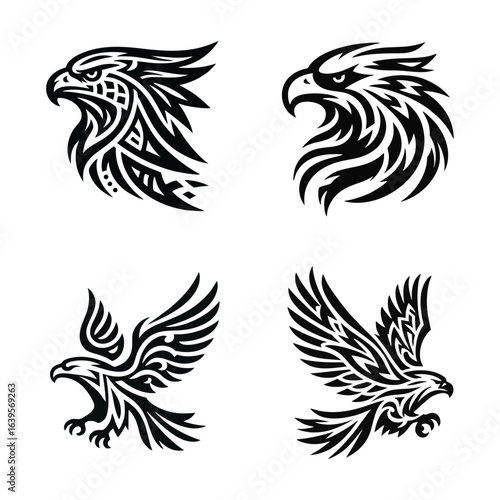 Obraz premium Eagle Tribal Tattoo Designs Vector Set