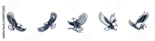 Fototapeta premium Eagle vector art illustrations. Eagle head clipart. Black eagle logo vector.