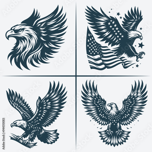 Obraz premium Eagle vector Bundle file ,Black and white Eagle silhouette file, Eagle svg vector silhouette Bundle file