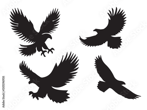 Fototapeta premium eagle vector set and Flying eagle birds silhouettes on white background....