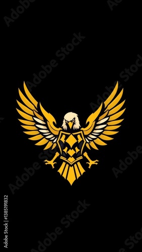 © Rahmat , Obraz premium Eagle warrior logo with wings spread and sharp golden armor