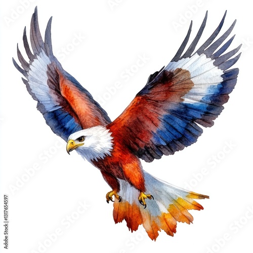 © Tuong, Obraz premium Eagle Watercolor Illustration: Majestic Predatory Bird in Flight on White Background