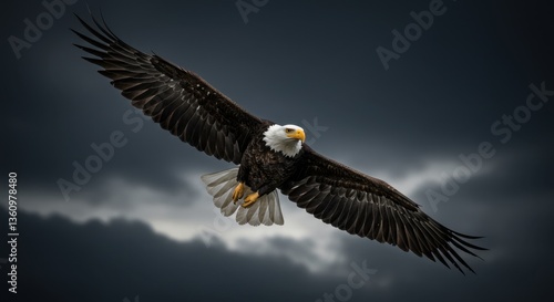 Obraz premium Eagle with Flag in Stormy Sky