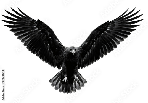 © logonv, Naklejka premium Eagle with spread wing in black and white close up. Predator bird concept. Graphic design element and symbol of freedom.