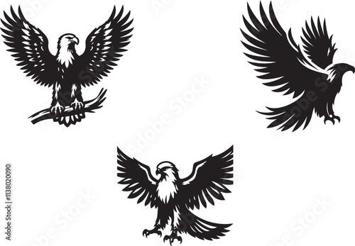 Fototapeta premium eagle with wings and eagle set silhouette of vector
