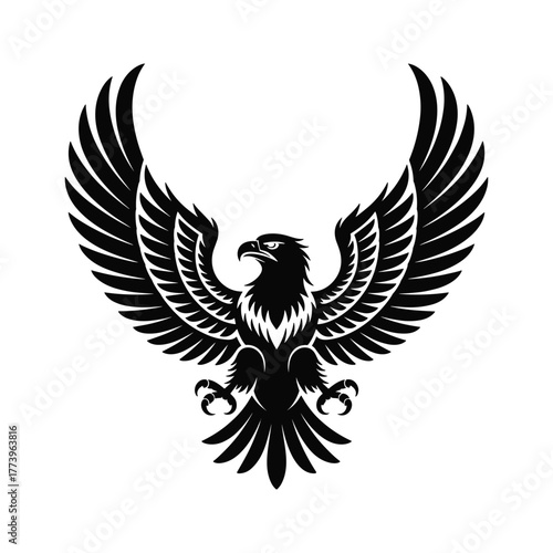 Fototapeta premium Eagle with wings spread black silhouette symbol of power and freedom