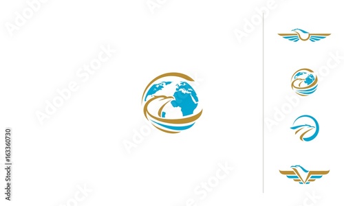 Fototapeta premium Eagles, wings, globes, world, emblem symbol icon vector logo