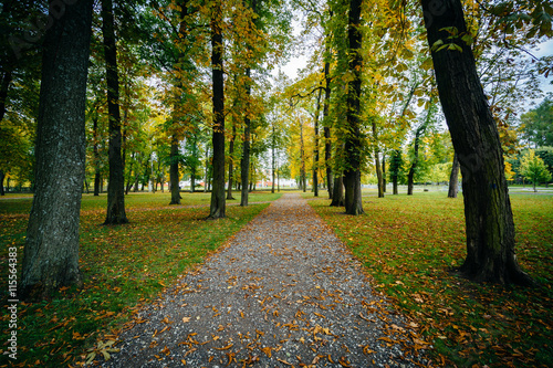 Fototapeta premium Early autumn color along a walkway seen at Kadrioru Park, in Tal