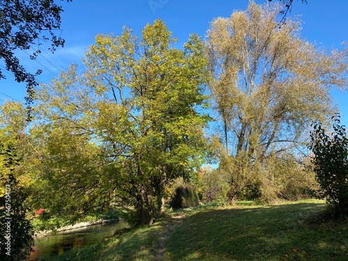 © Mario, Naklejka premium Early autumn landscape in parks and along recreational trails in the city of Zürich (Zuerich or Zurich), Oerlikon - Switzerland (Schweiz)