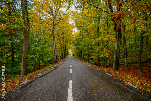 © Bert, Obraz premium Early Autumn morning in a quiet road somewhere in Sweden.
