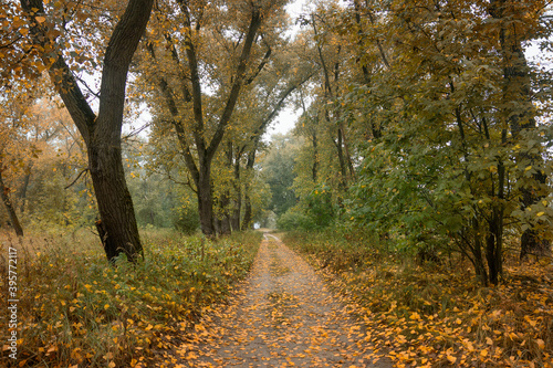Obraz premium Early foggy morning in the park. Gomel, Belarus.