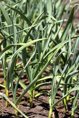 Fototapeta premium Early garlic in the garden.