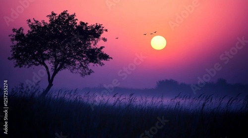 © Pichkan, Fototapeta premium Early Morning Calm Atmosphere with Dark Hues and Rising Sun