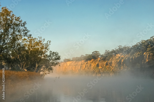 Obraz premium Early morning mist and fog on the Murray River near Wakerie in South Australia.