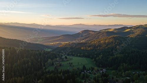 © TheWaterMeloonProjec, Obraz premium Early morning over mountain ranges captured from above