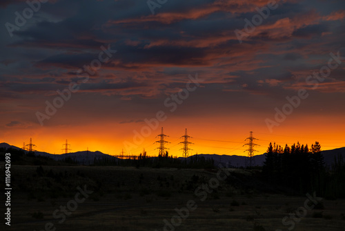© Alistair, Fototapeta premium Early Morning Sunrise Hydro Electricity Powerlines