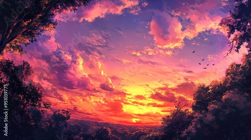 © Vilaphon , Obraz premium Early morning sunrise illuminating a vast valley