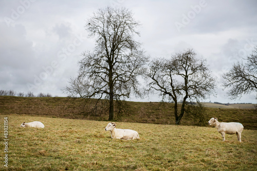 © manuta, Obraz premium Early Spring views on fields with sheeps in England