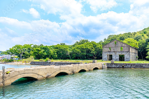 Naklejka premium 初夏の魚雷発射試験場跡 片島公園 長崎県川棚町 Early summer torpedo launch test site trace....