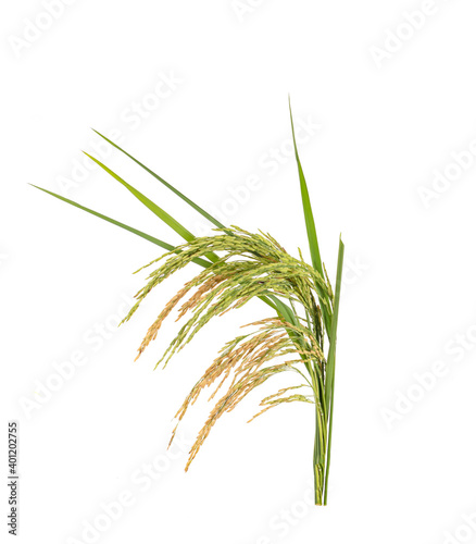 © sucharat, Naklejka premium Ears of paddy rice grain isolated on white background