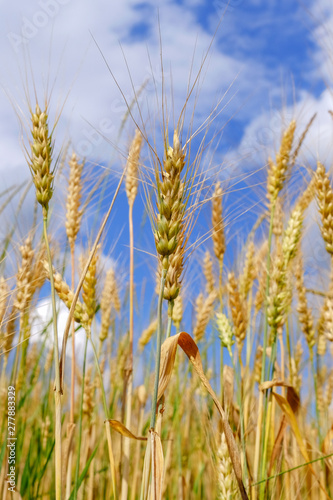 Fototapeta premium Ears of ripening wheat against the sky on a summer day.