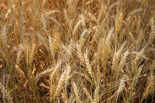 © artverau, Fototapeta premium ears of wheat close up on blurred background.