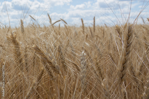 Fototapeta premium Ears of wheat or rye against the sky. Place for text. Agriculture. Ukraine