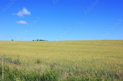Obraz premium Ears of yellow wheat in the field