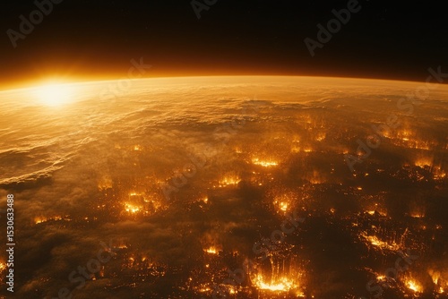 © Andihidayat67, Fototapeta premium Earth ablaze, fiery sunset view from space