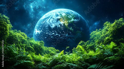 © suparti, Fototapeta premium Earth Above Lush Night Forest
