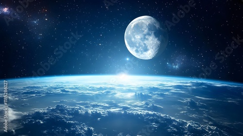 © Berkah, Fototapeta premium Earth and Moon in Space A Celestial View