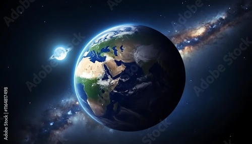 © Brother Stocks, Fototapeta premium Earth and Ringed Planet in Cosmic Space
