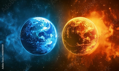 Fototapeta premium Earth and Sun in Cosmic Contrast. Generative ai