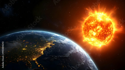 © Siasart Stock, Obraz premium Earth and the sun in a vast, starry space.