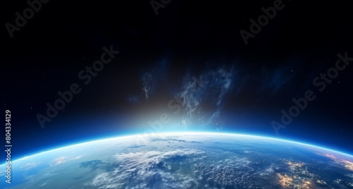 Obraz premium Earth as seen from space with visible galaxy stars, on a dark cosmic...