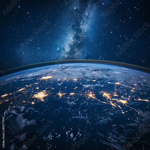 Obraz premium Earth at night. Abstract wallpaper. City lights on the planet. Civilization. Elements