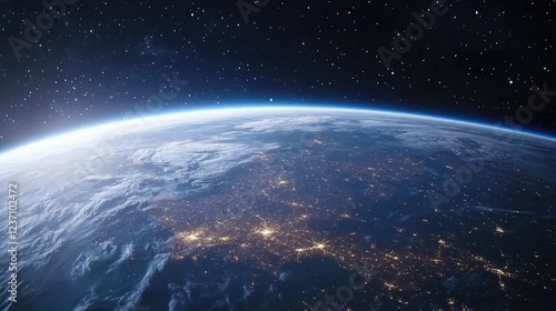 © Rere_Art151, Obraz premium Earth at Night City Lights and Starry Sky