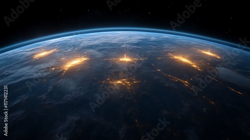 © wisnu, Fototapeta premium Earth at night, city lights glowing.