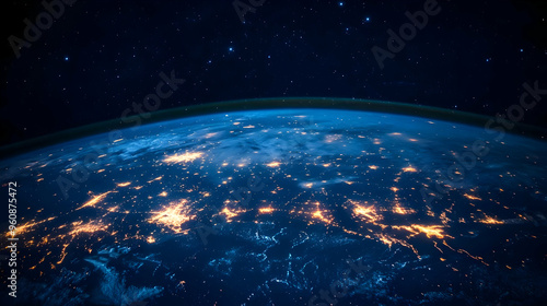Obraz premium Earth at Night City Lights Satellite View Space Planet Stars
