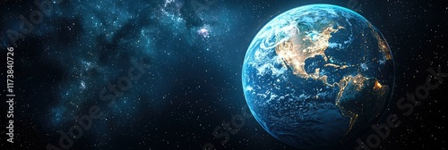 Obraz premium Earth at night from space, showing city lights and continents.