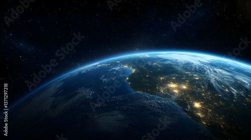Fototapeta premium Earth At Night From Space With City Lights