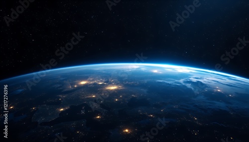 © goesti, Obraz premium Earth at Night Showing City Lights and Stars